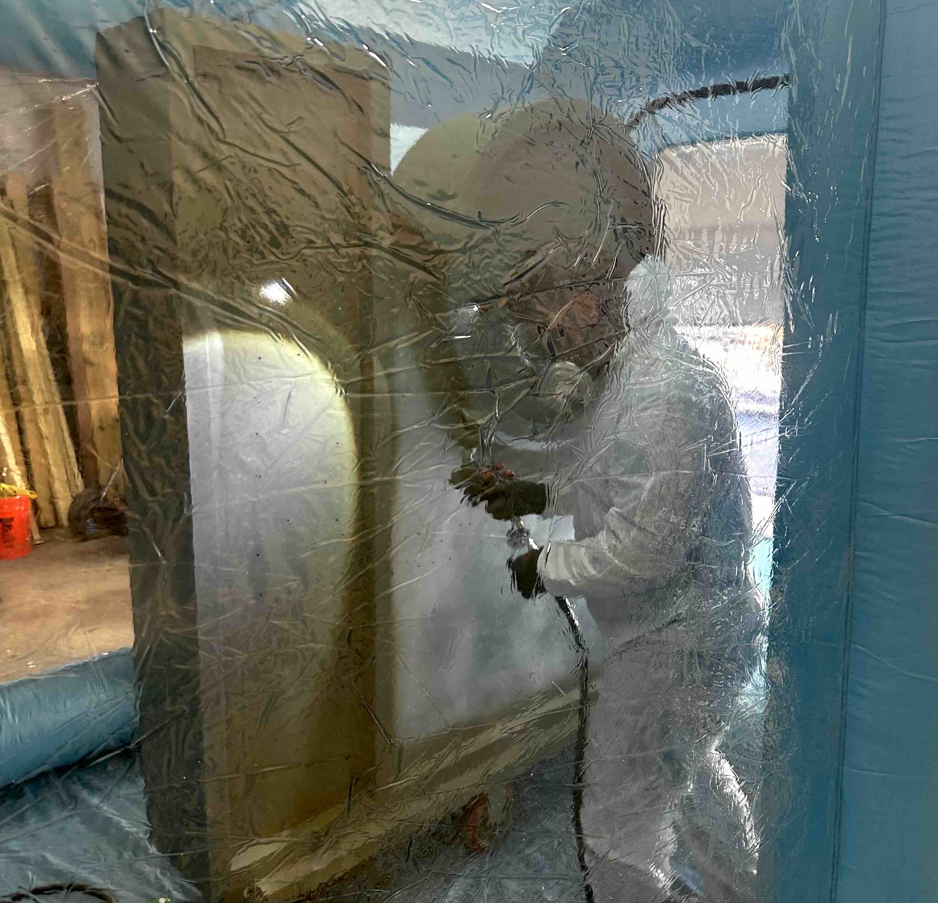 Once the entire frame has been assembled, it is brought into the paint booth to be primed and painted.